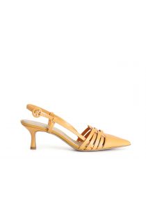 Dècollète in pelle aperte dietro con listini e punta affusolata. tacco h. 55mm