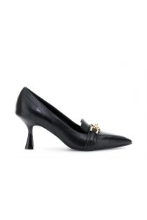décolleté in pelle con morsetto nero