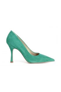 dècollète in pelle scamosciata verde