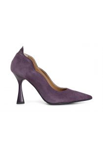 Décolleté da donna in pelle scamosciata dallo stile elegante e femminile. calzatura arricchita da particolare motivo ad onde in pelle. tacco slim leggermente a rocchetto altezza 95mm. soletto in morbido pellame.