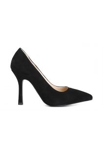 Décolleté in pelle scamosciata con tacco dalla forma sfilata