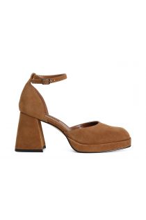 décolleté in pelle scamosciata e cinturino alla caviglia caramello