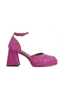 décolleté in pelle scamosciata e cinturino alla caviglia fuxia