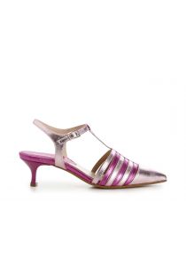 dècollète in similpelle laminata con fasce laterali e fibbia multi fuxia
