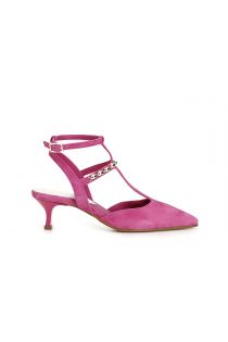 dècollète in suede con gabbia decorativa fuxia