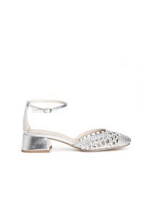 décolleté open shank in laminato intrecciato con laccio alla caviglia argento