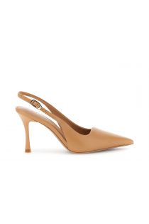 Décolleté slingback in nappa con punta affusolata. fodera e soletto in pelle. tacco a rocchetto alto 8.5 cm. calzatura elegante e luminosa ideale per look da cerimonia e serate speciali. comfort e stile in ogni passo.