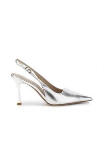 décolleté slingback in pelle laminata argento