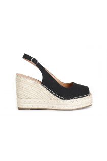 Sandali spuntati in canvas.soletto pelle. zeppa in corda di 10.5 cm e plateau di 3.5 cm. cinturino regolabile. soletto in pelle.