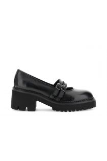 Décolleté stile mary jane in pelle con doppio cinturino regolabile. fodera e soletto in pelle suola carrarmato e tacco alto 6,3 cm. design grintoso e femminile per look decisi e urban.