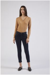Jeans in tela denim super stretch dalla vestibilità skinny. applicazione di strass sulle tasche posteriori.