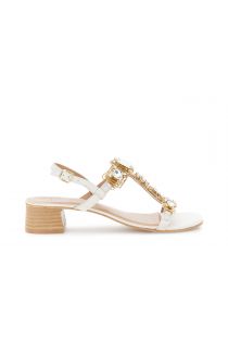 Sandali in pelle con cinturino alla caviglia e design a "t" arricchiti da maxi pietre decorative per un tocco deciso e luminoso. soletto in pelle. linea femminile tacco basso di 4 cm stabile e calzata confortevole. perfette per dare carattere anche ai look più easy.