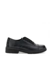 Derby da donna in similpelle con dettagli in strass e borchie perfetta per look eleganti e grintosi. sottopiede in pelle e tacco comodo da 3,5 cm. stile e comfort per tutto il giorno.