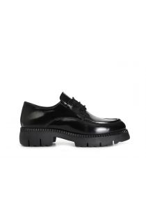 Derby da donna in pelle allacciato. fodera e soletto sono in pelle. plateau alto 25 mm. tacco da 40 mm.