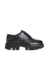 Derby donna in pelle dal tocco maschile. soletto in pelle. fondo a carro armato e tacco di 35mm.
