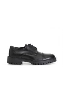 Scarpa derby uomo allacciata in pelle mediante 4 coppie di fori e con spunterbo sulla tomaia. soletto in pelle.