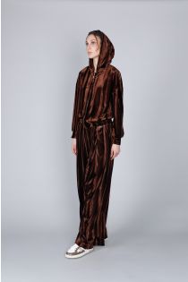 Felpa con zip frontale e cappuccio in morbido velluto sfumato dal finish luminoso. ideale per look casual chic. vestibilità regular. la modella è alta 173 cm e indossa la taglia s.