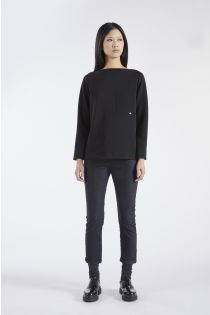 Felpa realizzata con tessuto tecnico accoppiato e interno a contrasto. Scollo a barca.