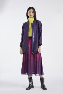 Felpa lunga simil bomber realizzata in tessuto elesticizzato. Le impunture a due aghi sono con filato a contrasto e donano al capo un tocco sportivo. L'articolo è foderato e per tal ragione diventa molto versatile da usare anche come capospalla nella mezza stagione