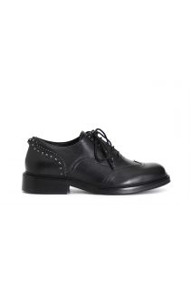 Francesina da donna allacciata realizzata in pelle e arricchita da microborchie cromate. il soletto è in pelle.
