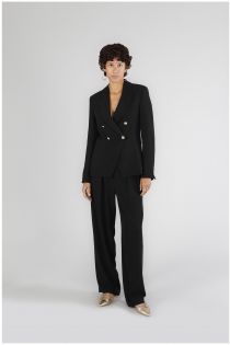 Giacca doppiopetto realizzata in tessuto tecnico fluido. chiusura trasversale. e' possibile abbinare la giacca ai pantaloni nel medesimo tessuto. modello che si distingue per la vestibilità perfetta e lo stile unico e versatile.
