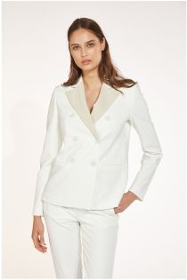 Giacca doppiopetto con rever a contrasto. Capo di grande tendenza che può completare svariati look da quelli più formali a quelli più alternativi.