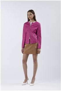 Giubbino girocollo realizzato in similpelle dall'effetto invecchiato. cerniera centrale. linea basic che dona eleganza e semplicità.