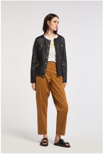Giacca girocollo in similpelle con preziosi bottoni logati
