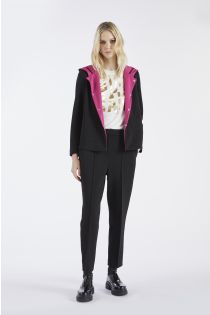 Giacca in tessuto tecnico accoppiato con cappuccio dal gusto sportivo con interno a contrasto