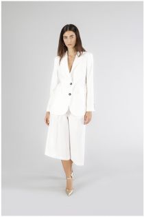 Giacca monopetto in tessuto fluido e cascante. chiusura con due bottoni e tasche a filetto con pattina. completa il look con la gonna o un paio di pantaloni in coordinato.
