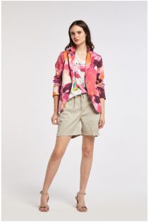 giacca monopetto stampata in cotone elasticizzato camouflage multirosa