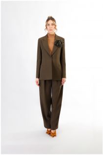 Giacca monopetto over con il collo a lancia realizzata in tessuto bistretch. elegante spilla a fiore. capo intramontabile da abbinare ad un paio di pantaloni skinny o a zampa.