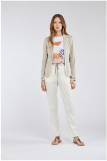 Giacca sfoderata realizzata in rasatello di cotone stretch. Una preziosa passamaneria a perline è stata minuziosamente applicata sul fondo manica