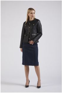 Giacca imbottita a maniche lunghe in similpelle con preziosi bottoni logati.
