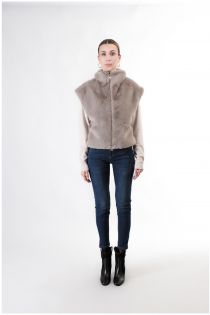 Gilet cropped con spalla scesa realizzato in una soffice similpelliccia tipo rabbit. chiusura con cerniera. capo ideale per creare sovrapposizioni