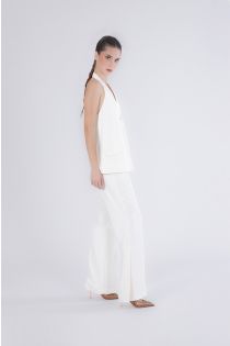 Gilet donna in cadi con scollatura americana linea elegante e femminile. design raffinato con schiena scoperta perfetto per look formali o serali. ideale da abbinare a pantaloni sartoriali. la modella è alta 175 cm e indossa la taglia s. vestibilità: regular.