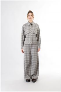 Giubbino sfoderato tipo bomber realizzato in tessuto elasticizzato principe di galles. chiusura con bottoni. si abbina perfettamente ai pantaloni realizzati con lo stesso tessuto.