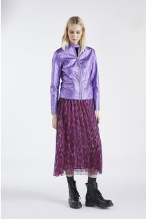 Giubbotto corto in similpelle laminata con fodera stampata