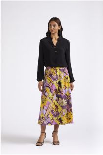 Gonna dalla lunghezza sotto al ginocchio con vita elasticata e tasche laterali. capo realizzato in popeline di cotone stampato.