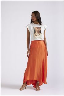 Elegante gonna lunga con tagli e asimmetrie realizzata in un leggero satin di viscosa. il modello aggiunge un tocco sofisticato ad abbinamenti speciali e casual.