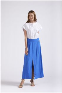 Gonna lunga con spacco sul davanti realizzata in tessuto misto lino. chiusura a zip laterale. semplice elegante moderna porta raffinatezza al tuo guardaroba di tutti i giorni.