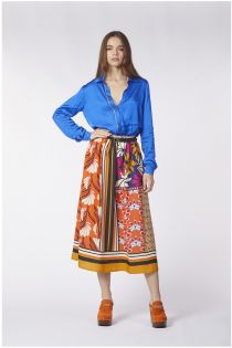 Gonna midi realizzato in un particolare tessuto di viscosa. disponibile in due varianti di stampa perfette entrambe per qualsiasi occasione.