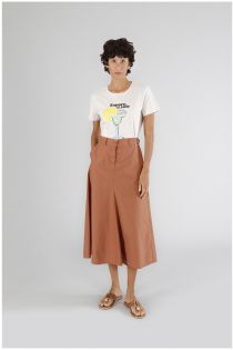 Gonna svasata realizzata in tela paracadute tinto capo. chiusura con bottone e zip frontale. cinturino elasticato nella parte posteriore. tasche laterali.
