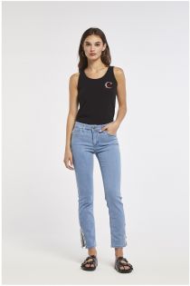 Jeans audery vestibilità slim in tela superstretch con preziosa applicazione di strass allo spacco