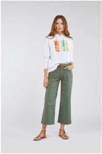 Jeans coulotte Greta realizzati in bull denim arricchiti da nastro etnico multicolor. Il modello Greta è audace nella sua semplicità. Come te.