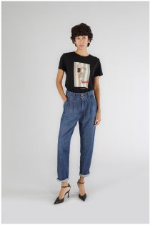 Jeans dalla vestibilità mom fit con pieghe davanti realizzato in tela denim slegata. capo perfetto per chi si sente indipendenti e alla moda e che ama sperimentare ed essere sempre chic e originali.