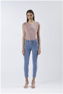 jeans denim skinny con applicazione catena gioiello sky