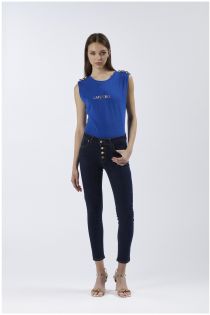 jeans denim skinny con bottoniera indaco