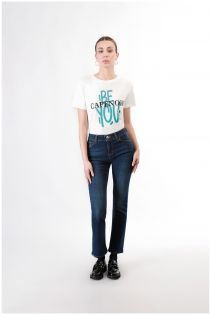 Jeans denim in tela super stretch dalla vestibilità slim. passanti in vita cinque tasche chiusura con bottone logato a chiodo e zip. etichetta sul retro con logo.