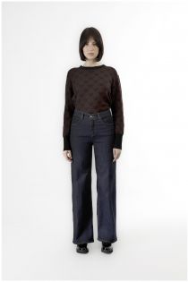 Jeans denim in tela super stretch dalla vestibilità wide leg. passanti in vita cinque tasche chiusura con bottone logato a chiodo e zip. etichetta sul retro con logo.